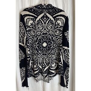 Free People Smitten Kitten Cardigan- Black & White, Patterned, Oversized Fit, XS