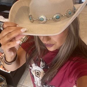 New Boutique. Stylish western hat featuring elegant silver Chain accents. Perfect for adding a touch of sophistication to any outfit.