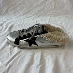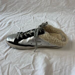 SOLD Golden Goose Sabot Super Star Slip on Shearling Sneaker Silver size 39