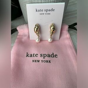 NWT Kate Spade Under the Sea Tulip Pearl Gold Tone Shell Drop Earrings