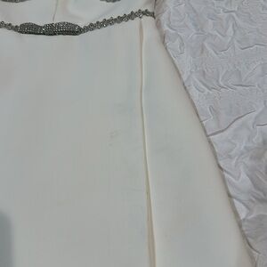 Self portrait white dress, it has a few spots which I’m not sure if they are stains because I have not tried removing it or dry cleaning but they look like they’d come out. Fits true to size.