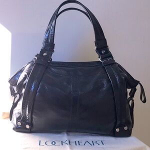 Lockheart Black Doctor Bag Patent Leather. See pics for measurements. Stuffed but can be slouchy. Never used. I bought this when I was a shop-a-holic. Excellent condition. Comes from a smoke free, pet free home. Tags: vintage, doctor bag, large bag, retro, red, patent leather, slouchy