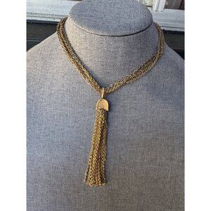 Crown Trifari Modernist MCM Tassel Goldtone Necklace
