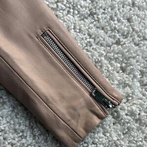 Elevate your style with the Walter Baker Tan Leather Jacket with moto details. The leather is like butter! This chic piece offers a timeless look with its sleek design and high-quality material. Perfect for any occasion.