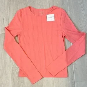 American Eagle Outfitters Pink Ribbed Long Sleeve Tee