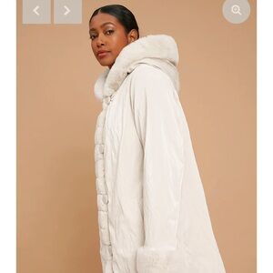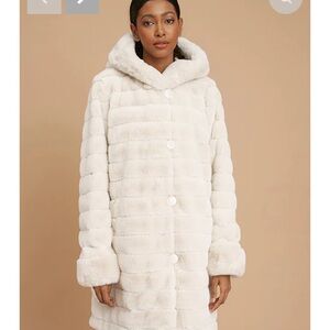 Reversible Faux Fur Coat W/ Fixed Hood & Button Front This luxurious piece is perfect for those chilly winter days. Keep it casual during the day and reverse for a chic nightime look!