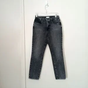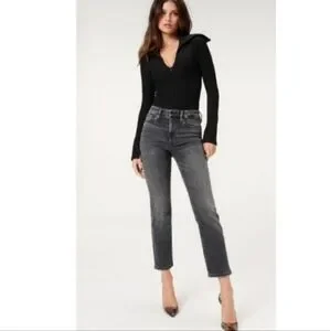 GOOD AMERICAN classic straight leg charcoal skinny Jeans mid-high rise NWOT