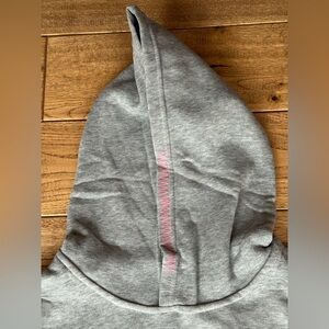 Brand new without tags no brand triple heart gray hoodie sweatshirt. Size large. Gray with screen printed 3 red and pink hearts across front. Pink screen printed zigzags on side of kangaroo pocket and side of hood. Approximately 21” pit to pit; 27.5” long; 23.5” sleeve length.