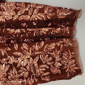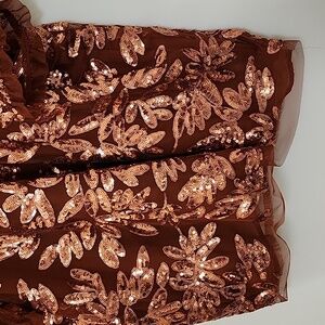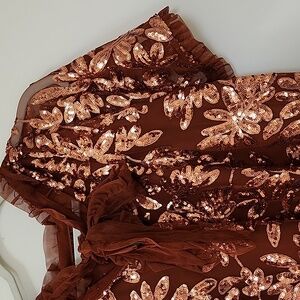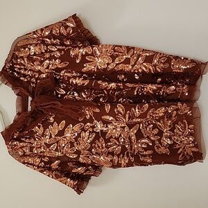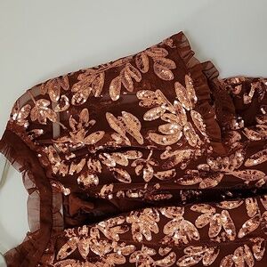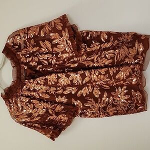 Anthropologie Womens Burnt Orange Floral Sequin Cut Out Blouse Top Size XL
