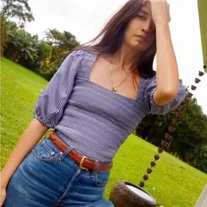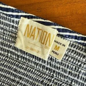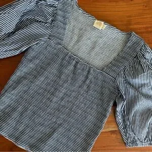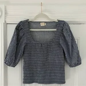 Nation LTD Navy Blue Smocked Puff Sleeve Blouse