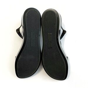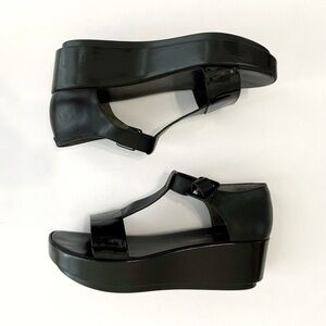 VINTAGE ROBERT CLERGERIE LEATHER T STRAP FLATFORM SANDALS IN ALL BLACK