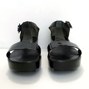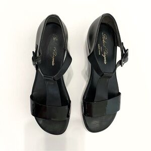 VINTAGE ROBERT CLERGERIE BLACK LEATHER T STRAP PLATFORM SANDALS