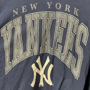 Stylish navy long sleeve shirt featuring New York Yankees logo. Perfect for fans.