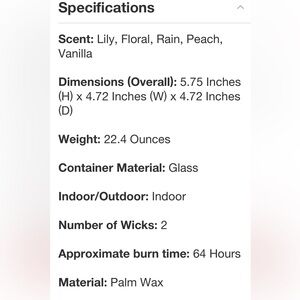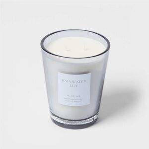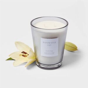 THRESHOLD NWT colored glass vase w/ scented candle -rainwater lily & peach -22.8