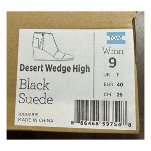 Toms Desert Wedge High Black Suede Size 9
