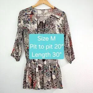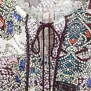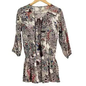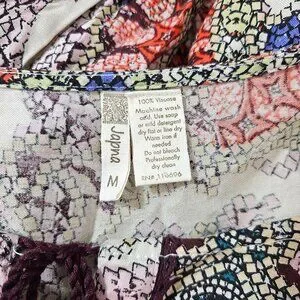 Japna Womens Sz M Vibrant Colorful Print Boho Top Tunic Tassel Hippie Blouse