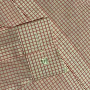 Fresh from the cleaners, pink and white checked dress shirt. My son wore this once to a horse track brunch. No stains, like new condition. I ship within 24 hrs and have 5 star rating!