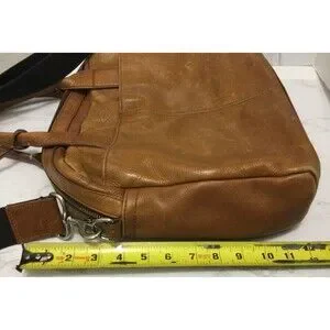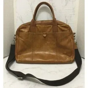 Fossil Messenger Computer Distressed Leather Laptop Shoulder Strap Brown Tan