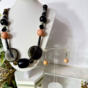 Black Glass and Pink stone Crystal Women’s Necklace with matching earrings