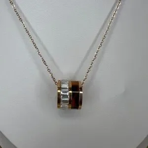 Beautiful rose gold with two crystal and dark brown barrel pendant