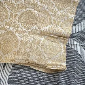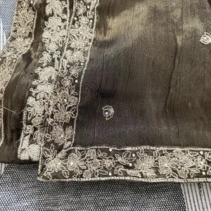 attached. Trouser is Printed Banarsi/Jamavaar style.Dupatta has border embroidery. Fabric of shirt and dupatta is Masoori .The size is small to