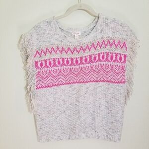 XL Girls Sleeveless Fair Isle Fringe Boho Style Sw