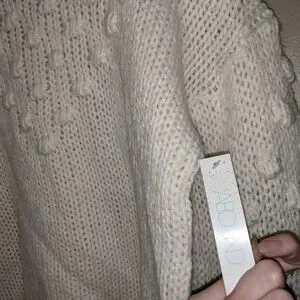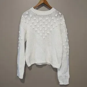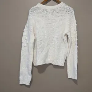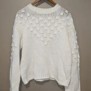 Abound Textured Pom Knit Crew Neck Pullover Sweater Ivory White Women Medium NEW