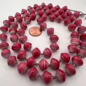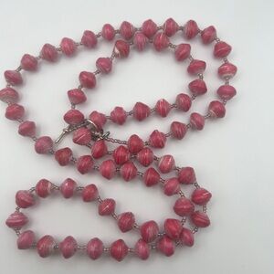 Bead for Life Pink Paper Beads with seed pearl rhinestones Necklace