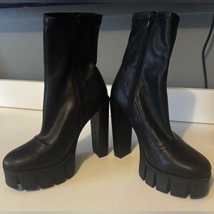 Step up your style with these chic black platform boots. Perfect for any occasion, these boots offer both comfort and fashion-forward design.