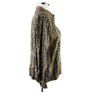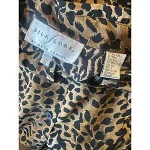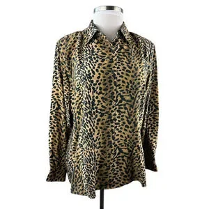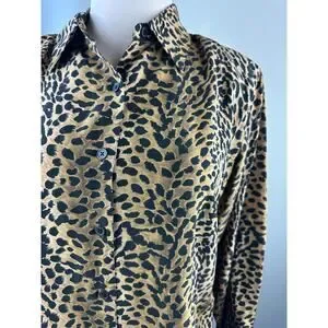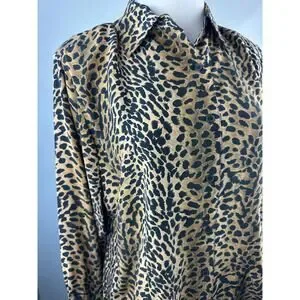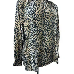 100% Silk Cheetah Print Button Front Blouse