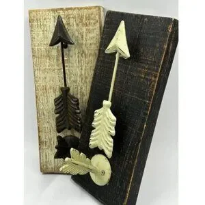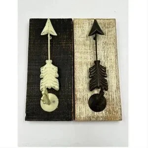 Wooden Arrow Sign Brown Rustic Coat Wood Plaque Hooks Hang Keys Wall Art Decor