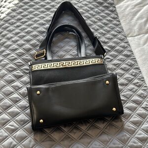 Elevate your style with this Versace women's bag. Featuring a sleek black design with elegant gold accents, this bag is perfect for any occasion. Experience luxury and sophistication with Versace.