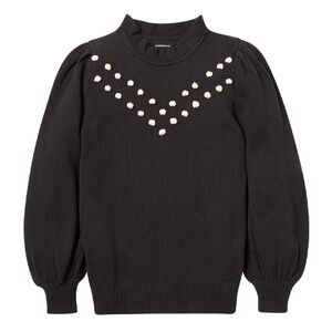 Summersalt The Year-Round Balloon Sleeve Pompom Sweater Black Size XL NWT