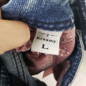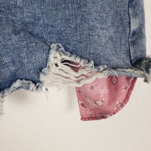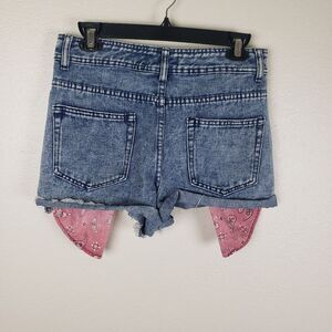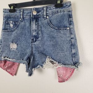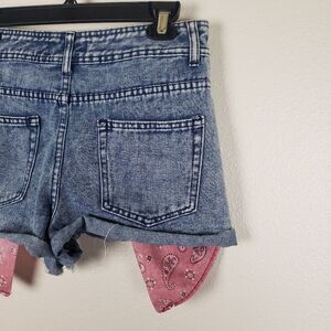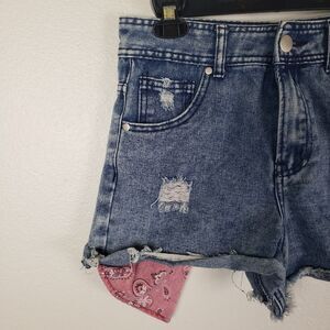 Women's Kreamy Denim Red Kerchief Bandana Pockets Distressed Cuff Off Shorts LRG