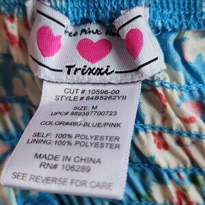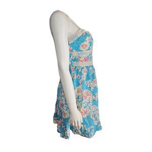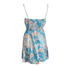 Trixxi Dress Womens Size M Medium Blue White Pink Floral Sleeveless Smocked Back