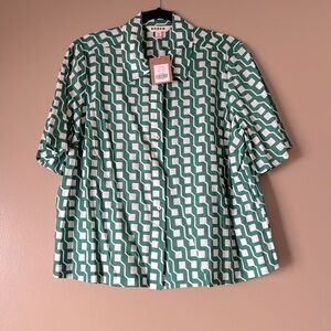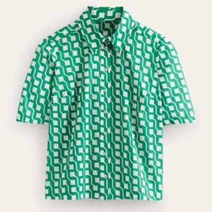 Boden Short Sleeve Cotton Shirt in Bright Emerald, Cube Geo