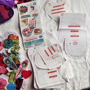 * includes some pattern pieces, some fabric sheets, pre-cut projects, and decorative fabric pieces (May not be complete)