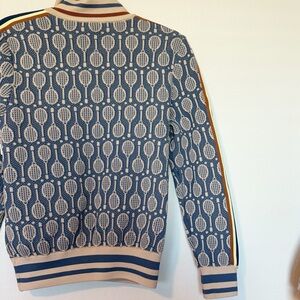 Tory Burch Tech Knit Jacquard Tennis Racquet Full-Zip Jacket Preppy Blue Medium