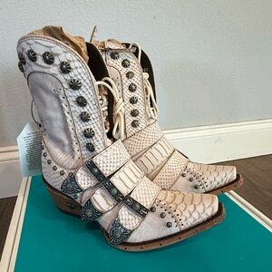 Lane SHOWDOWN Womens Cowboy Boots 7.5 White Leather Western Ankle Cowgirl Bootie