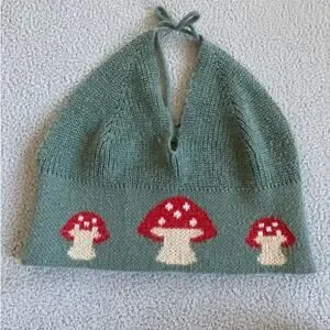 Mushroom Crop Tank Top Halter Large Knit V-Neck Cottagecore Red Green Bralette