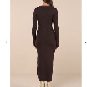 Lulus Refined Attitude Brown Ribbed Side Button Midi Sweater Dress - Size M