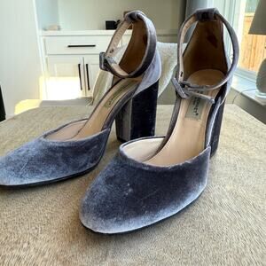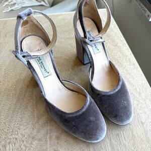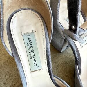 Diane Bennet Velvet Block Heel Ankle Strap Pumps Taupe 3.5" Made in Italy 38