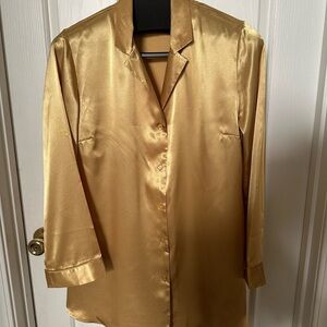 Polyester button up shirt dress / gown in size Medium. EUC. Color shown on the second photo is the exact color.