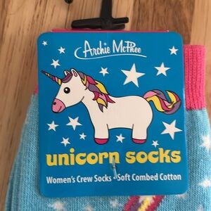 Women’s Novelty Socks Archie McPhee Unicorn Blue Q hellraiser Soft Combed Cotton