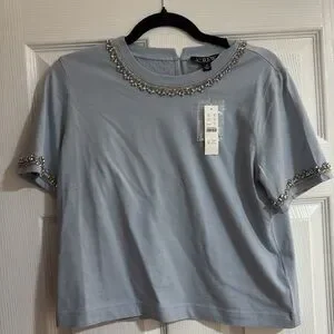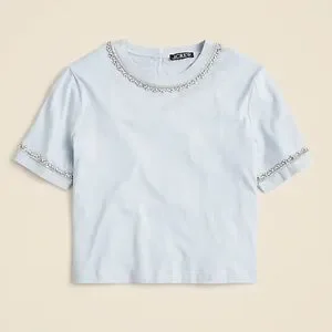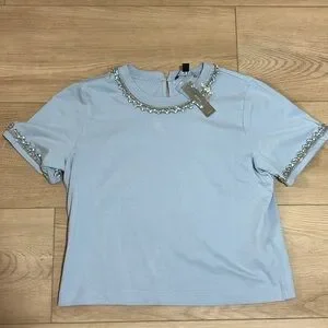 NWT J. Crew Heavy Jersey TShirt with Rhinestones Embellished XS Blue