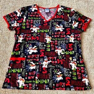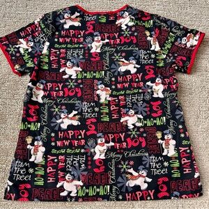 Christmas and New Year’s scrub top from Frosty the Snowman. Preowned great condition. Please see pictures for details.