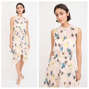 Self Portrait Midi Pink Dress Floral Sheer Tier Chiffon Size 4