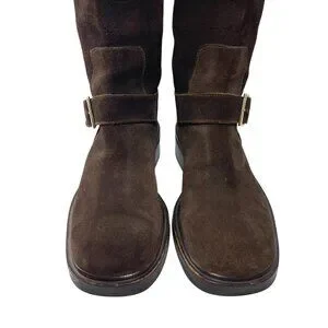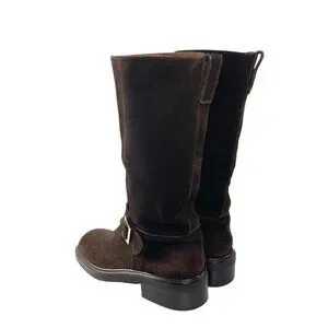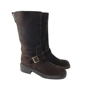 Vintage GUCCI Dark Brown Suede Buckle Mid Calf Boots Womens 36.5 6.5 B