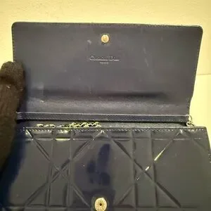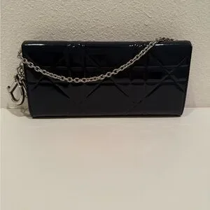 SOLD 🎉 Christian Lady Dior Navy Patent Leather Cannage Rendezvous Wallet Chain