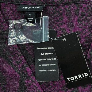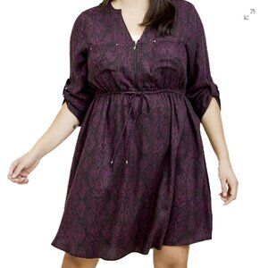 torrid Mini Brushed Rayon Purple Snake Print Drawstring Shirt Dress Size 1 - NWT